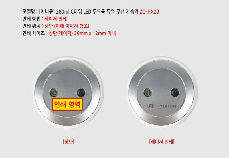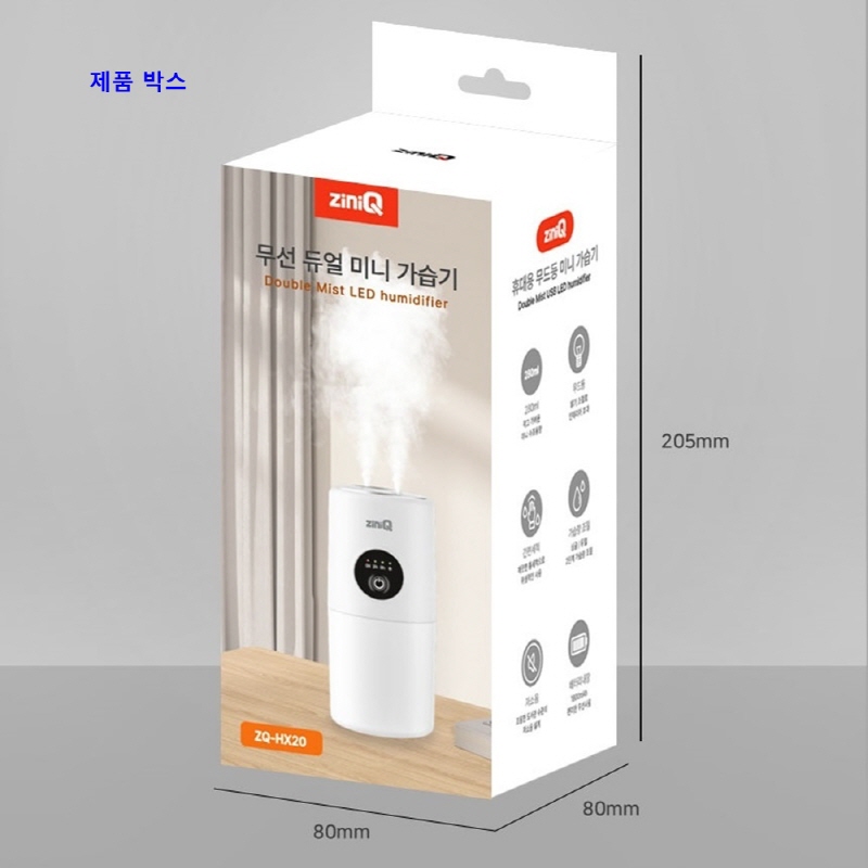 [Áö´ÏÅ¥] 280ml ¹«¼± CŸÀÔ LED ¹«µåµî Àú¼ÒÀ½ µà¾ó °¡½À±â ZQ-HX20 (78mm x 78,mm x 170mm / 209g)